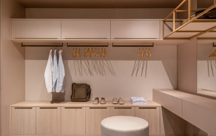 Uma boa ideia é utilizar prateleiras e gavetas para separar as roupas por categoria, como camisetas, calças e blusas. Prateleiras suspensas, gavetas com divisórias e cabideiros retráteis podem fazer toda a diferença na organização inteligente dos espaços.