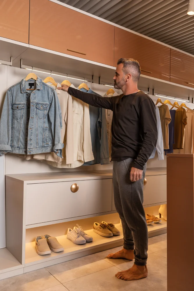 Agora você já tem as dicas certas para transformar o seu closet em um espaço funcional, esteticamente agradável e personalizado. É isso que ele precisa ser. Lembre-se: é você que precisa gostar e se sentir bem nele, pois é lá que você vai se preparar para sair para seus compromissos diários ou para vestir aquela roupa confortável no final do dia e relaxar. Que você possa ficar bem à vontade nesse refúgio prático e cheio de estilo.
