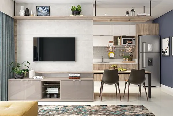 Em apartamentos pequenos, um bom projeto de iluminação deixa o ambiente mais confortável e agradável. Isso também influencia para que o espaço pareça maior. As luzes de cores mais claras contribuem com essa sensação.