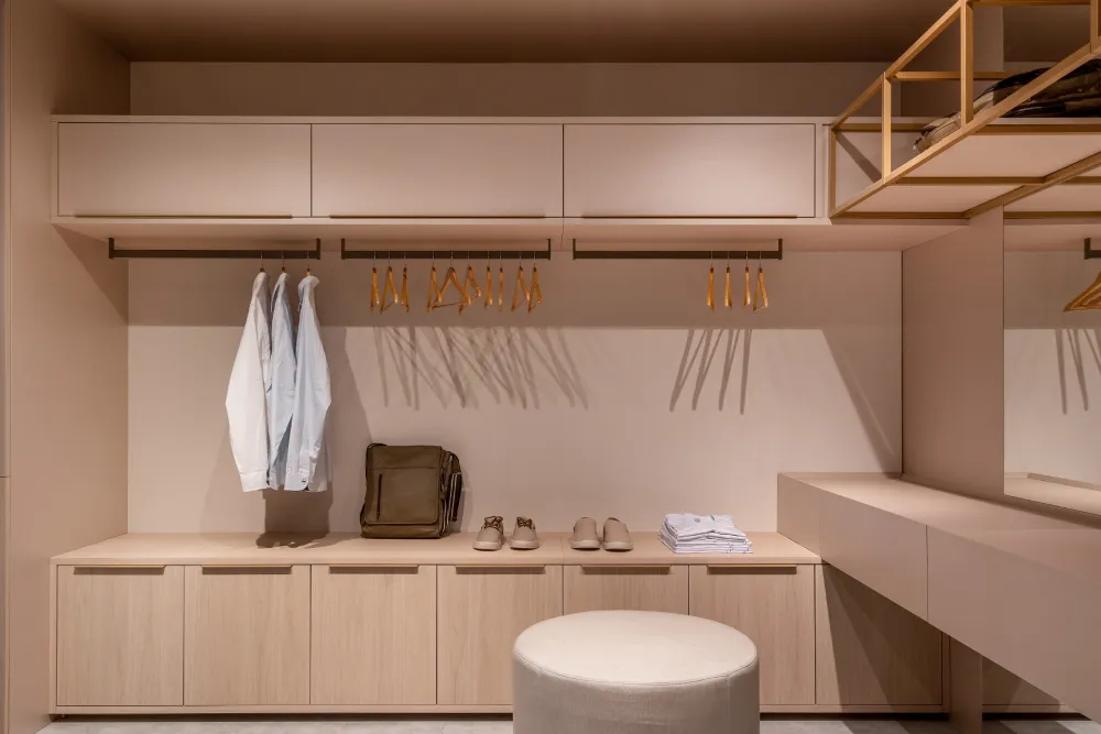 Barras duplas: se o seu closet for alto o suficiente, considere instalar uma segunda barra de cabide abaixo da primeira. Isso duplica a quantidade de espaço que você tem para pendurar roupas.