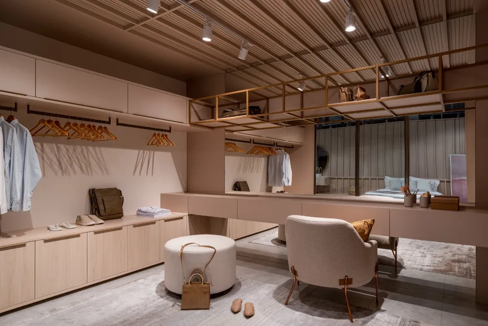 Inclua divisórias, prateleiras e gavetas personalizadas: esses elementos são essenciais, e permitem a separação de itens específicos. Prateleiras mais altas, próximas ao teto, são ideais para objetos menos usados, como chapéus e malas, enquanto separadores em gavetas facilitam a organização de acessórios como cintos e biquínis. Se você coleciona algum acessório específico, é possível criar nichos dedicados para exibi-los com destaque.