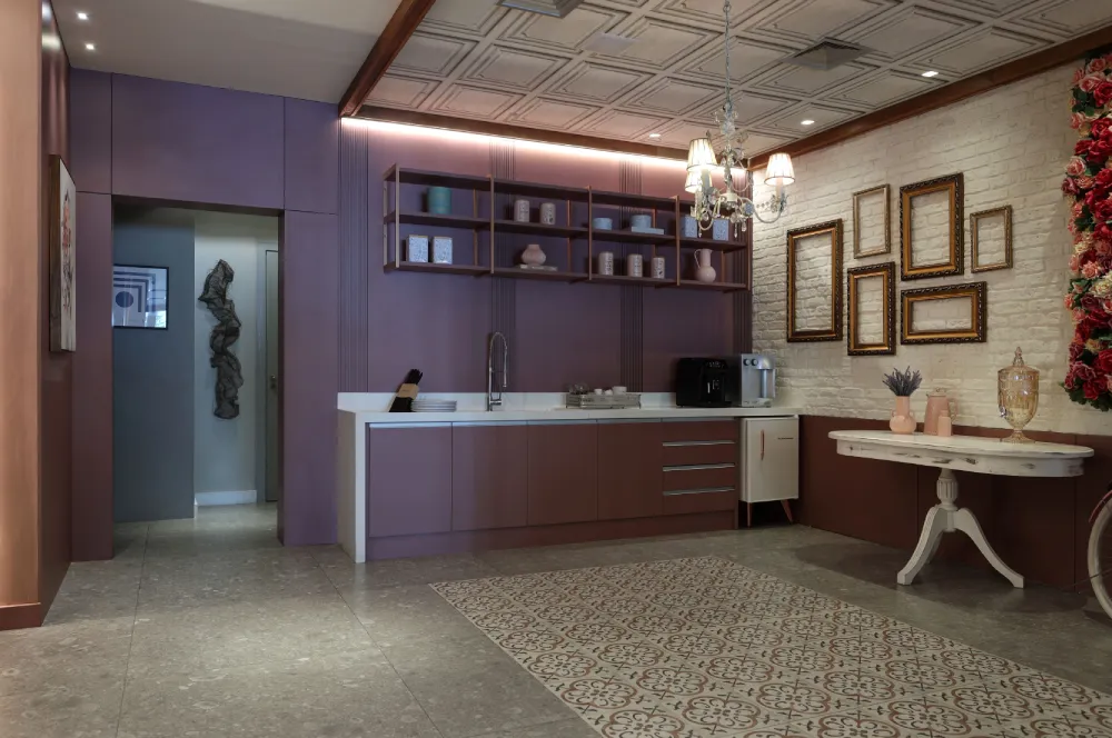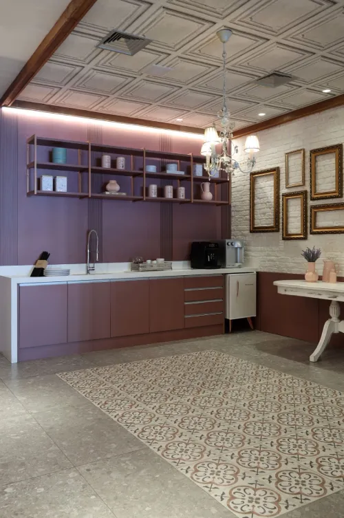 Para criar uma cozinha retrô autêntica, a combinação de cores e padrões é essencial. Misture cores vibrantes com tons pastéis e use padrões geométricos ou florais para adicionar interesse visual. Essa mistura de cores e padrões cria um ambiente dinâmico e acolhedor, típico do estilo retrô.